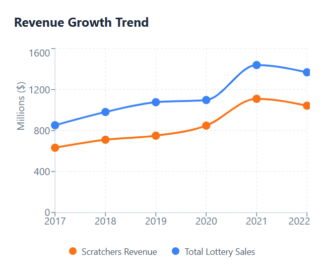 Scratcher sales have exploded in Arizona, growing from $632M to over $1B in just 5 years.